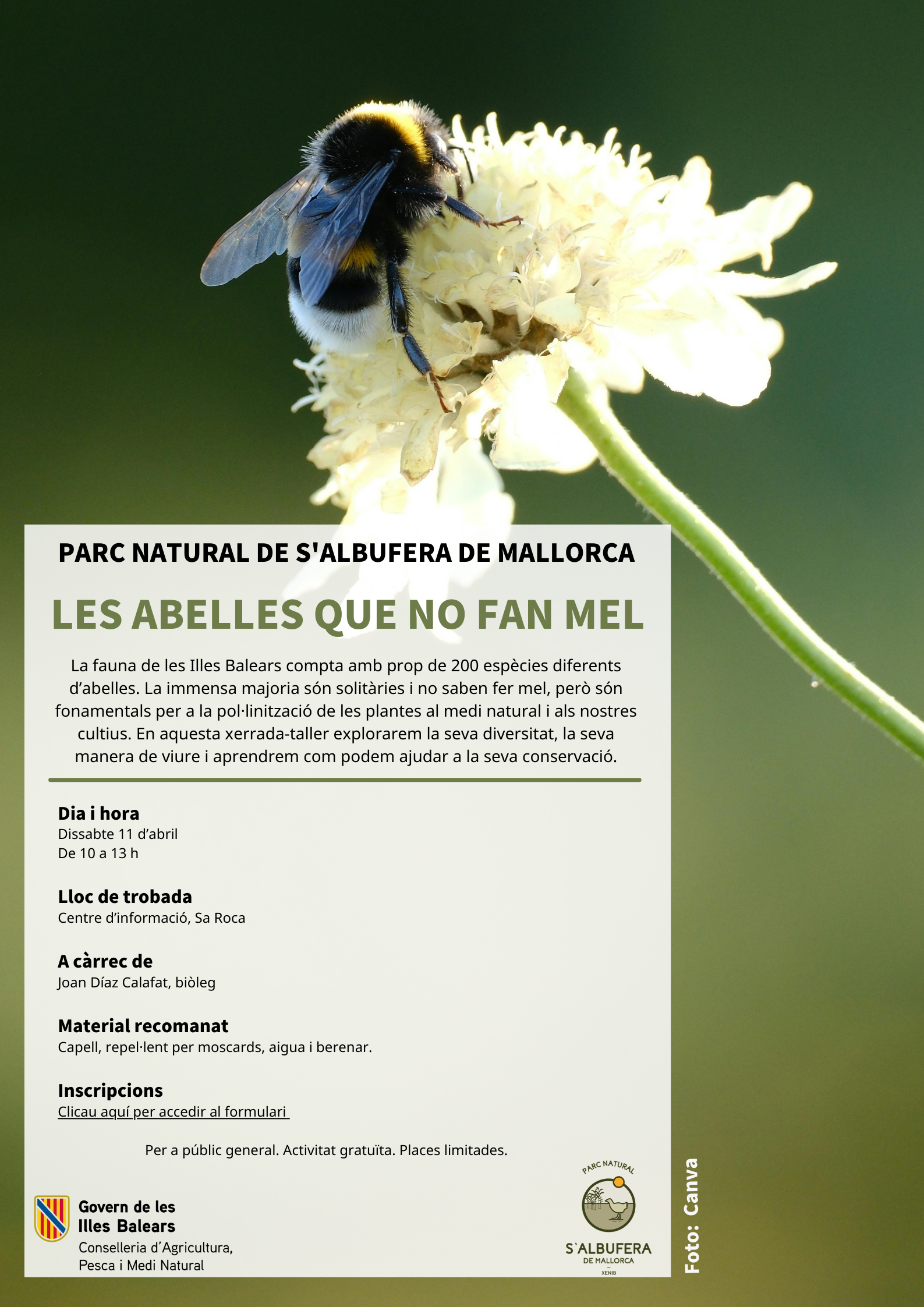 La fauna de las Illes Balears cuenta con cerca de 200 especies diferentes de abejas. La inmensa mayoría son solitarias y no dan miel, pero son fundamentales para la polinización de las plantas en el medio natural y en nuestros cultivos. En este charla-taller exploraremos su diversidad, su modo de vida y aprenderemos como podemos ayudar a su conservación.