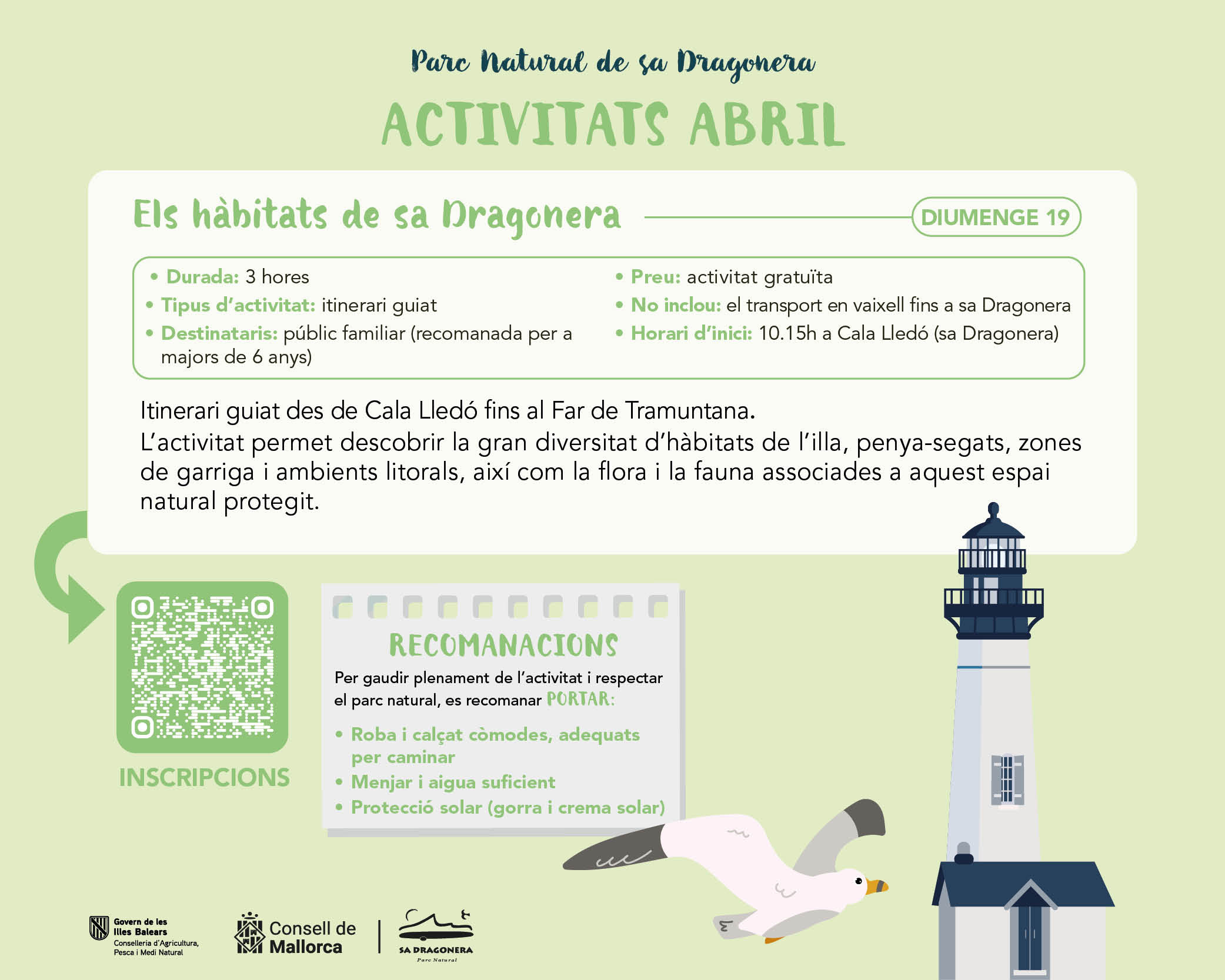 OBSERVACIONES: Actividad gratuita, pero hace falta inscripción previa. Para público general. A partir de 6 años. Recordáis que la actividad no incluye el transporte entre Mallorca y sa Dragonera .