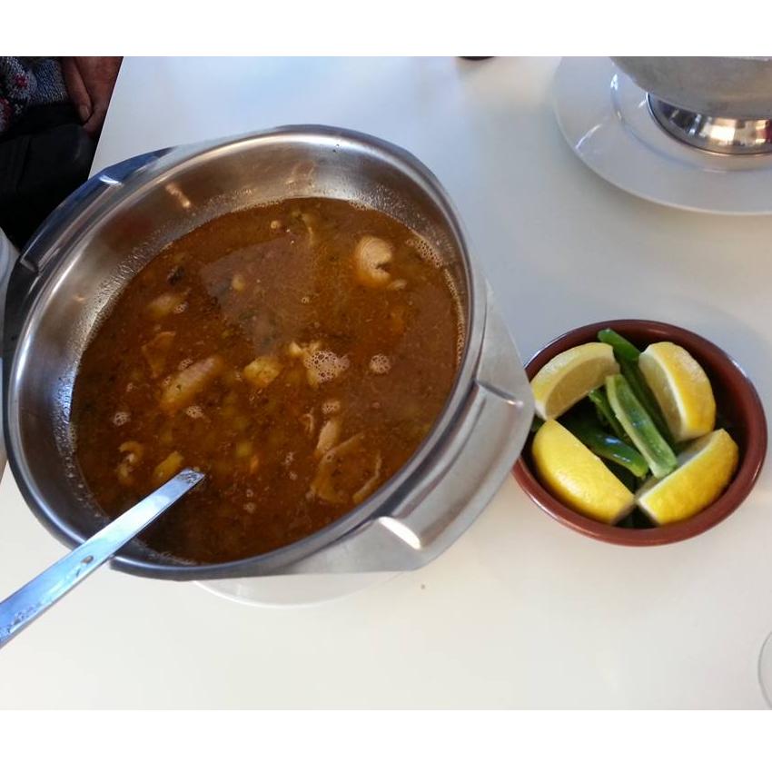 Usuarios de la R. y C.D. Son Güells comen "arròs brut" en el nuevo restaurante del club de fútbol del Atlético Baleares.