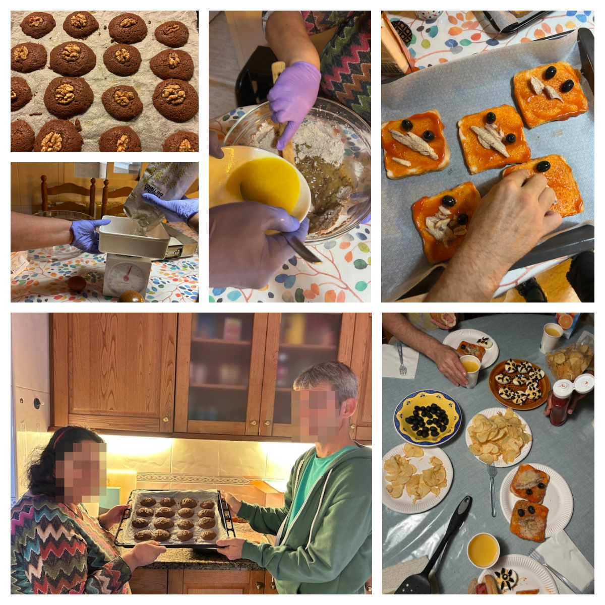 Cada persona residente participó en la elaboración de una receta y entre todas y todos hicimos una cena terroríficamente rica, apenas teníamos espacio para las galletas.
