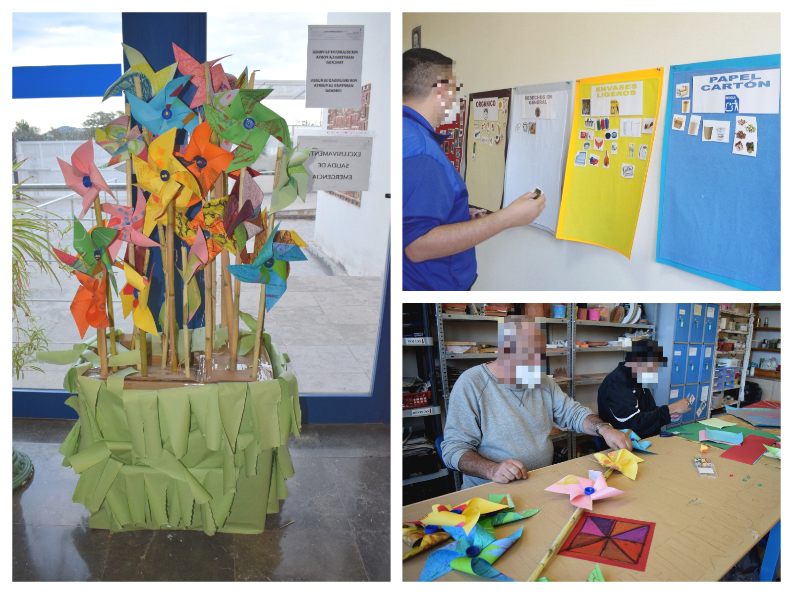 Por otra parte, los usuarios y las usuarias del CD han realizado el mes temático, realizando un trabajo conjunto en el taller de creatividad con papel reciclado, recreando una instalación de energía eólica. Esta actividad ha dado pie a comentar que son las energías renovables y como funcionan. En el taller de estimulación cognitiva han trabajado la descripción y la atención, también mediante el juego.