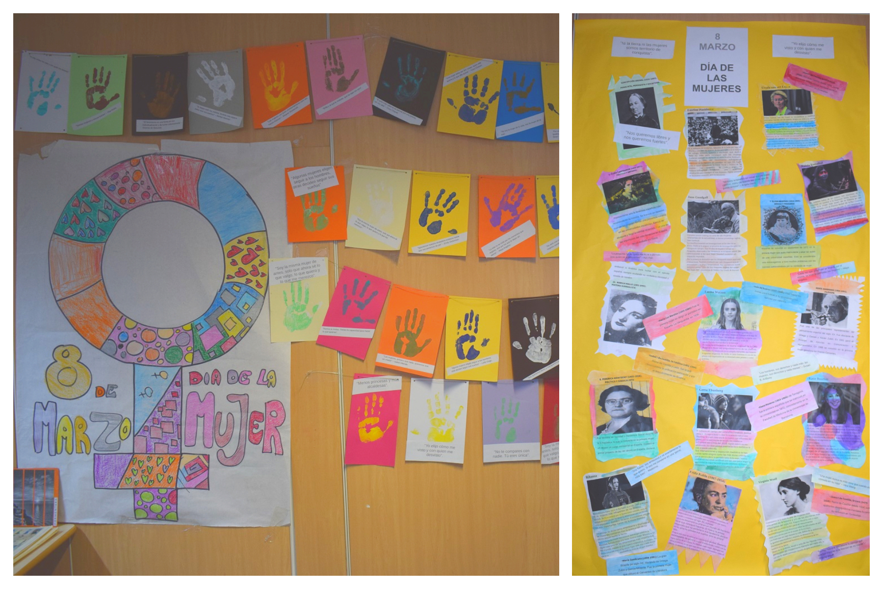 Se prepara un gran mural con fotos y frases de mujeres celebres que colorean.