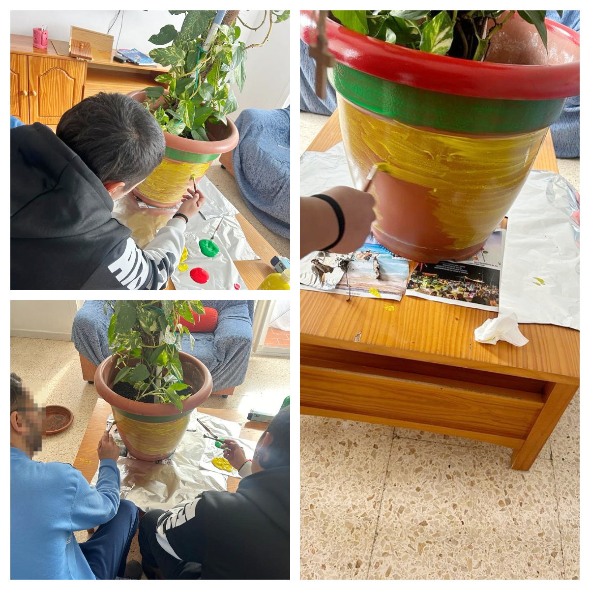 Aprovechando para dar un poco de color a los maceteros que tenemos en los pisos, hemos realizado una actividad de pintura creativa, activa y colorida.