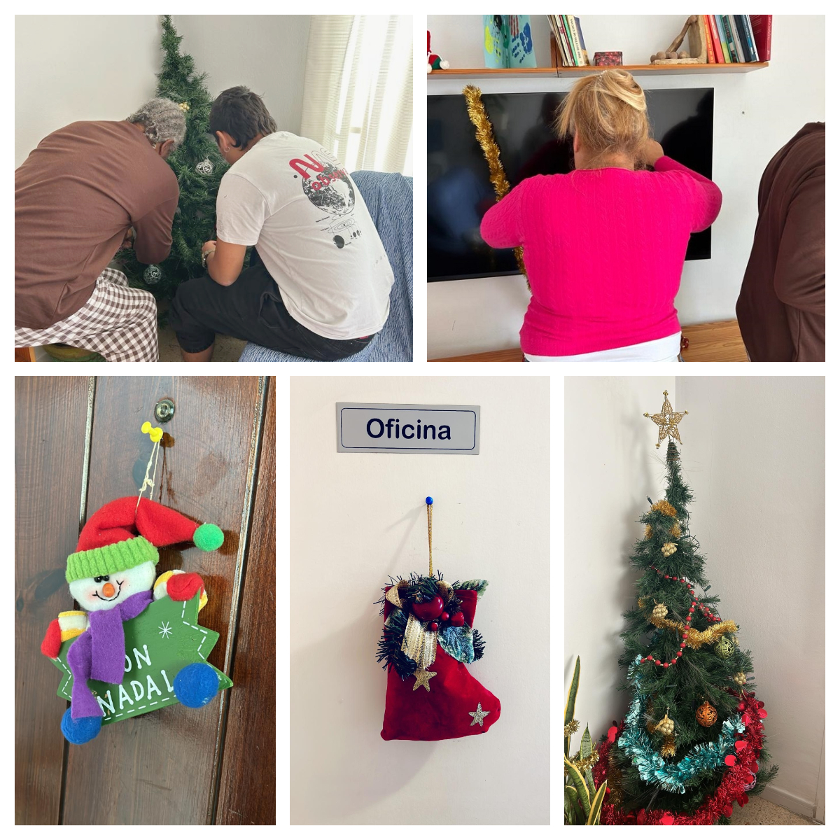 Entre todos y todas hemos puesto el árbol de navidad y decorado con guirnaldas.