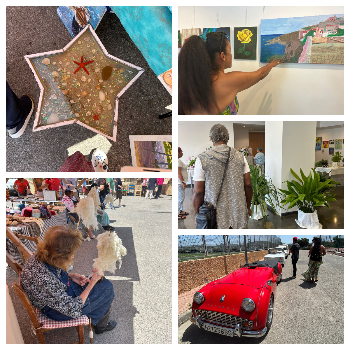Estuvimos mirando la exposición de coches clásicos y cada uno comento cuál era su favorito; además también había varios puestos de artesanía ibicenca.