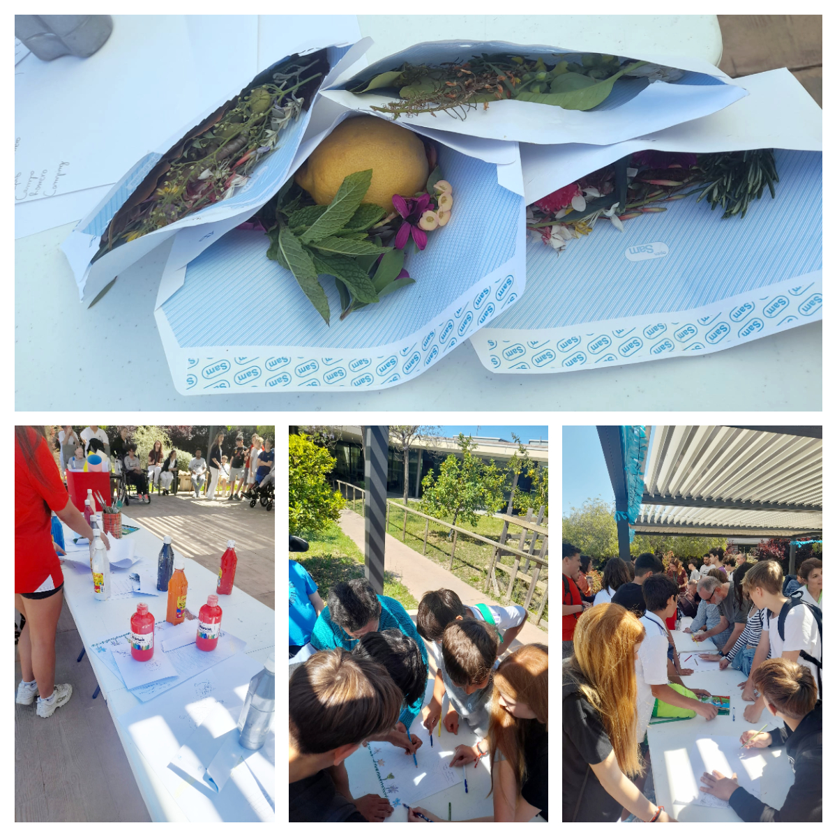 Primero hicimos un perfume cogiendo flores y hierbas de nuestro jardín, olían muy bien.