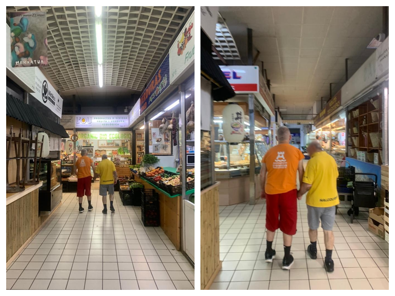 Usuarios de Can Raspalls realizan una salida al Mercado de Ibiza donde dan un paseo y pueden ver los diferentes puestos de fruta, carne, pescado, pan y otros.