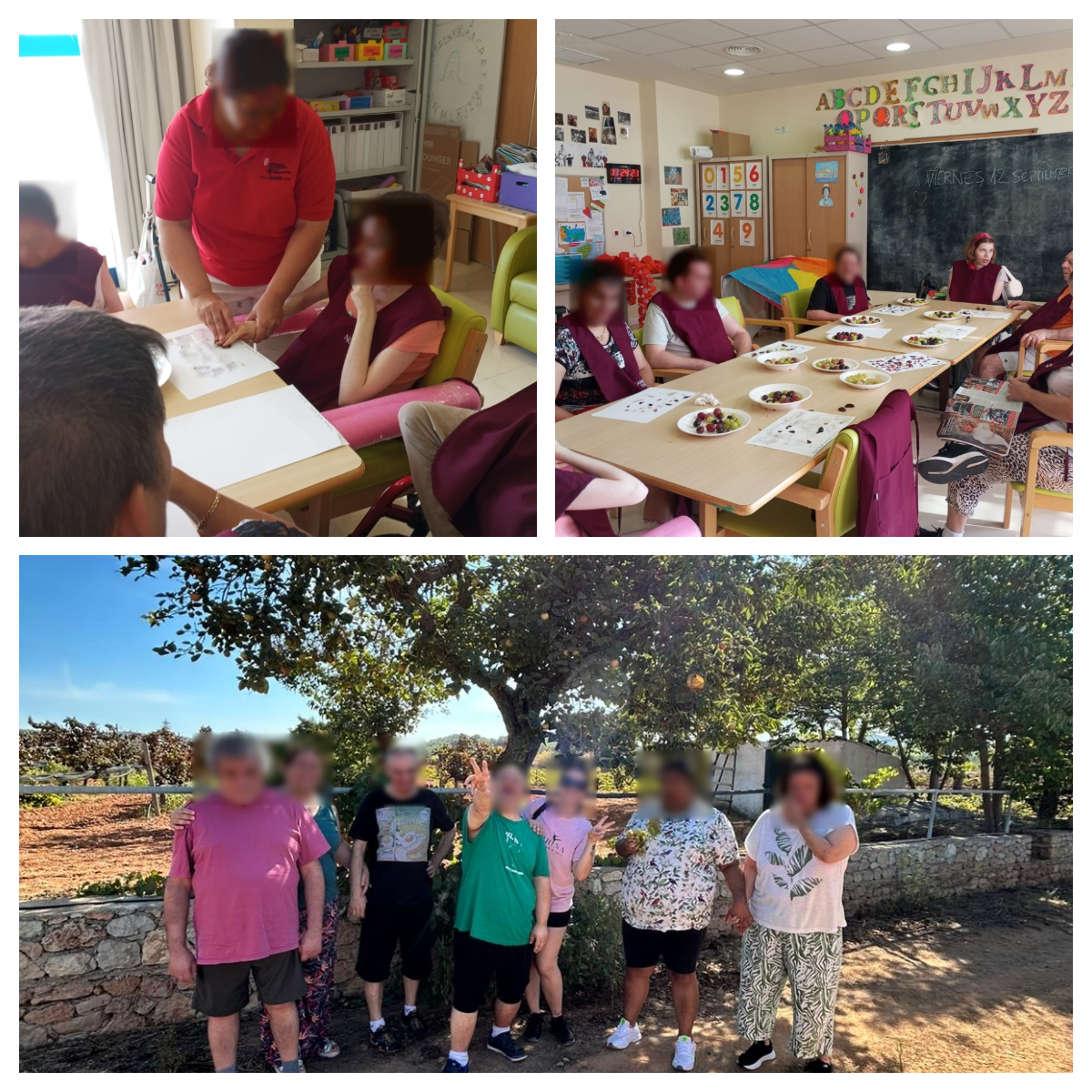Durante toda la semana del 15 al 19 de septiembre se ha realizado diferentes actividades relacionados con las uvas: hemos hecho un mural con dibujos de uvas en las cuales las hemos pintado con rollos de papel de WC y de cocina, hicimos una simulación de un tronco con papel para colgar dichas uvas, el miércoles fuimos a las bodegas de Can Rich, en la cual vimos de cerca la elaboración del vino, el jueves vimos un documental de la uva donde explican su recogida y como se obtiene de la uva el vino y, para acabar, el viernes hicimos unos dibujos con la piel de uva que, al ser morada, nos salieron diferentes tonos de lila i algunos de ellos incluso dejaron la piel.