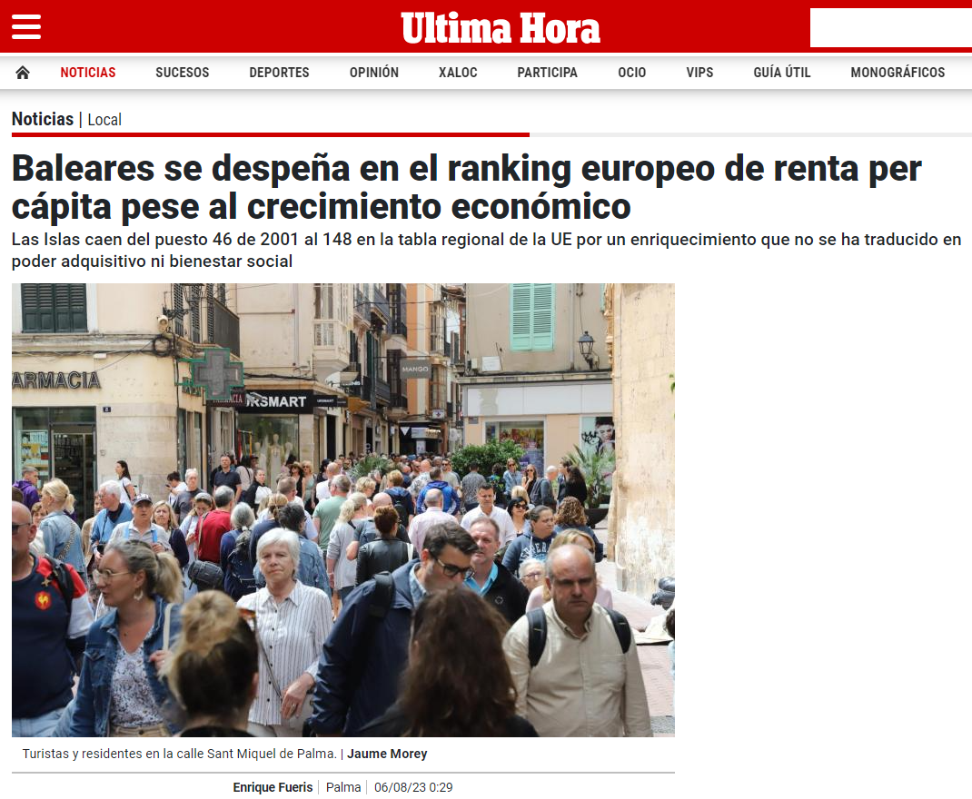 Las Islas caen del puesto 46 de 2001 al 148 en la tabla regional de la UE por un enriquecimiento que no se ha traducido en poder adquisitivo ni bienestar social
