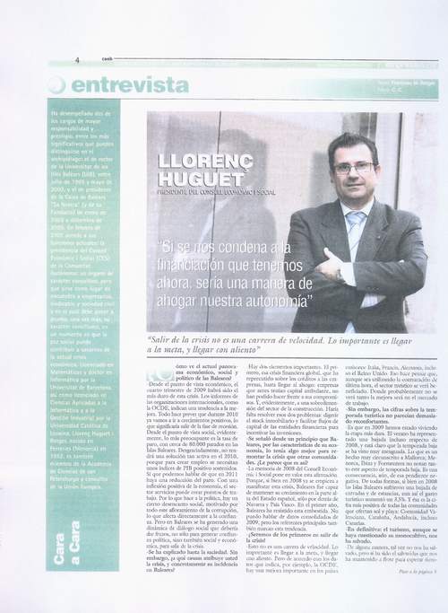 Entrevista Llorenç Huguet, president del Consell Econòmic i Social