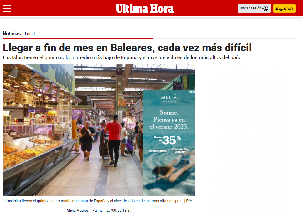 A l'article el conseller del CES en representació de les associacions de persones consumidores i usuàries, Pau A. Monserrat Valentí, atribueix el problema dels salaris baixos al model econòmic eminentment turístic.
