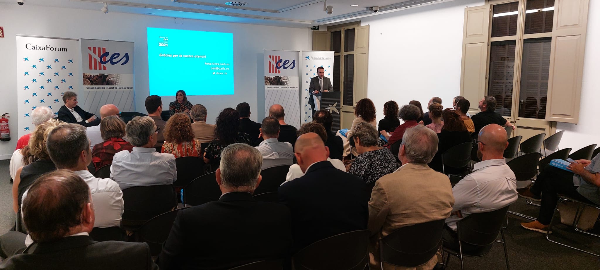 Presentació pública de la Memòria del CES sobre l'economia, el treball i la societat de les Illes Balears 2021 al Caixa Forum de Palma.