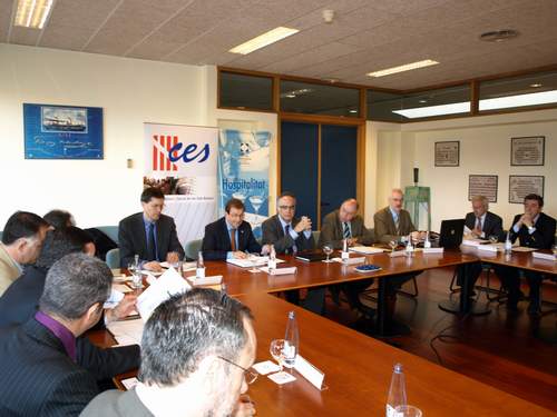 A la mesa principal:  el Conseller d'Economia i Hisenda, Carles Manera, els professors Francesc Solé Parellada (UPC), Javier Sánchez-Asín (Univ. Zaragoza) i el President del CES, Sr. Llorenç Huguet