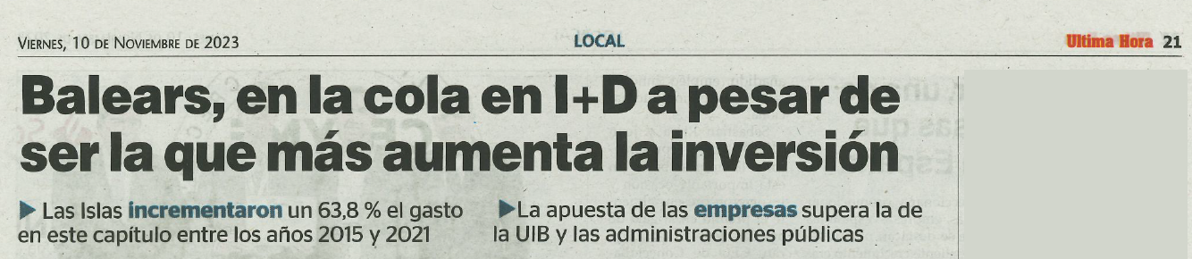 Balears sigue en la cola en I+D a pesar de ser la que más aumenta la inversión
