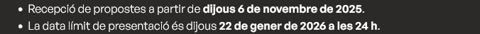Per propostes de música, d’arts escèniques, d’arts de carrer i de cultura popular i associacionisme, que parteixin de l’arrel tradicional com a motor creatiu. |
