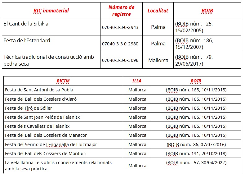 DECLARACIONS DE BÉNS D’INTERÈS CULTURAL IMMATERIAL A MALLORCA