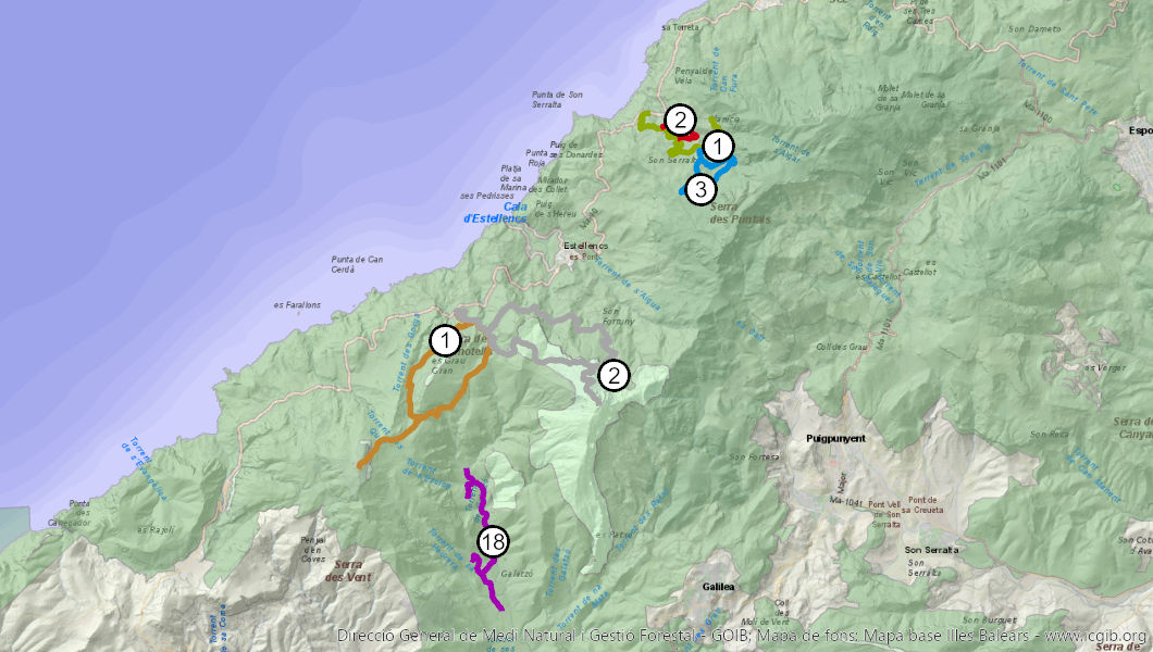 Los itinerarios accesibles con silla Joëlette dentro del Paraje Natural de la Sierra de Tramuntana son: