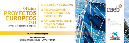 La Consellería de Fondos Europeos, Universidad y Cultura tiene un convenio con la Confederación de Asociaciones Empresariales de Baleares (CAEB) en materia de apoyo a las empresas para el acceso a los fondos europeos. En el marco de este convenio, se ofrece un servicio de asesoramiento especializado en fondos europeos y de impulso a proyectos empresariales transformadores a las empresas de las Islas Baleares, al cual podéis acceder desde su web.