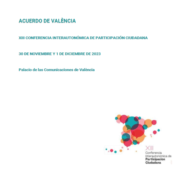 Durante la XIII Conferencia Interautonómica de Participación Ciudadana, celebrada los días 30 de noviembre y 1 de diciembre de 2023 en el Palau de las Comunicacions de València se presentó el Acuerdo de Valencia por un plan de acción común, que fue subscrito por parte de las comunidades autónomas participantes.