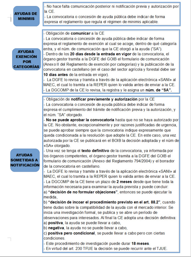 A nivel autonómico, se publicó la Instrucción 1/2021, del Consejero de Fondos Europeos, Universidad y Cultura y de la Consejera de Hacienda y Relaciones Exteriores, de 20 de diciembre del 2021, por el cual se regula el procedimiento de notificación y comunicación a la Comisión Europea de los proyectos que establezcan, concedan o modifiquen ayudas públicas.
