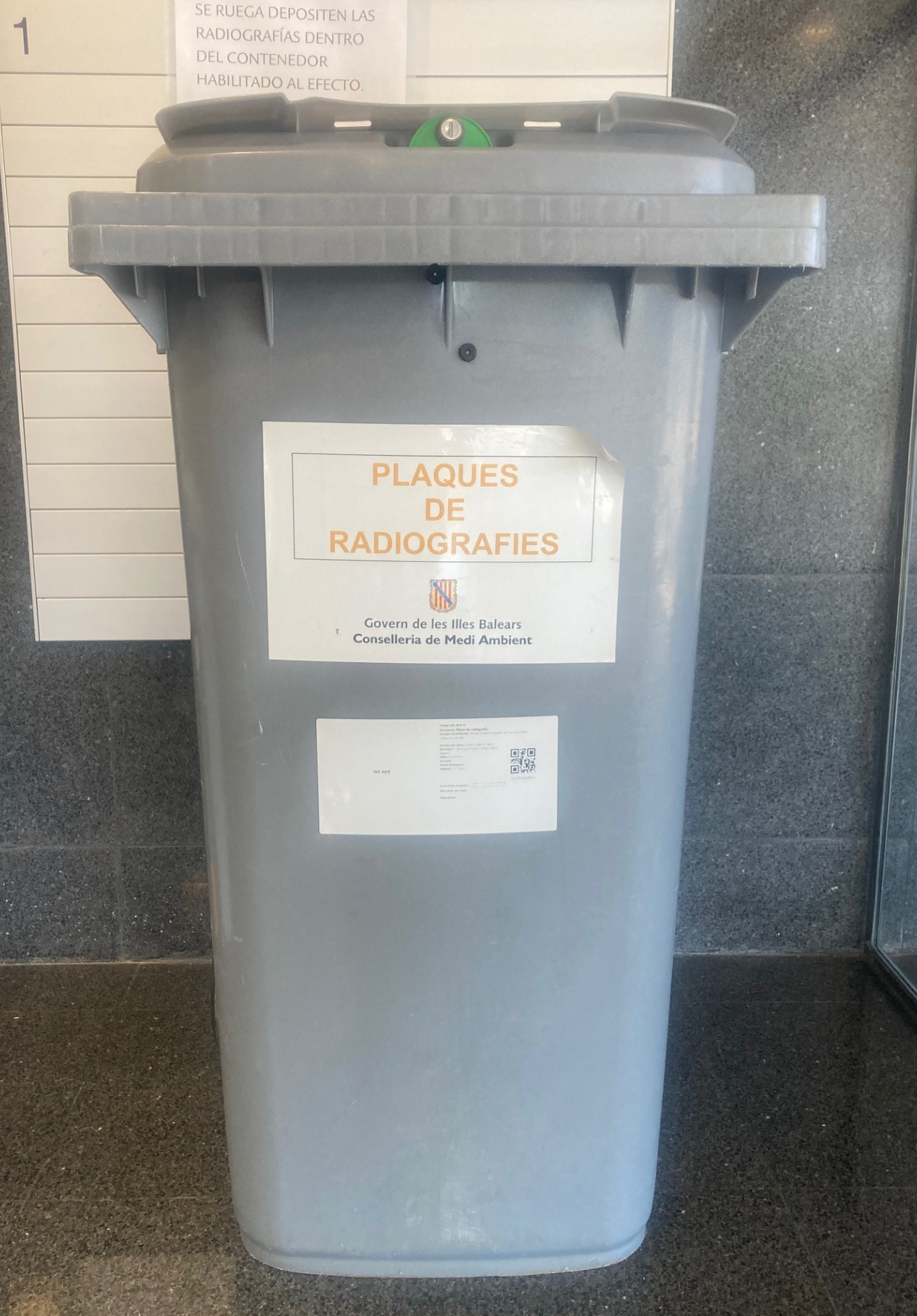 La Dirección General de Salud Pública informa de la existencia de un contenedor destinado a recoger radiografías para su correcta eliminación. Este contenedor está disponible en la sede de la Consejería de Salud ubicada en la calle Jesús, 38-A en Palma - Mallorca (vestíbulo de la entrada al edificio):