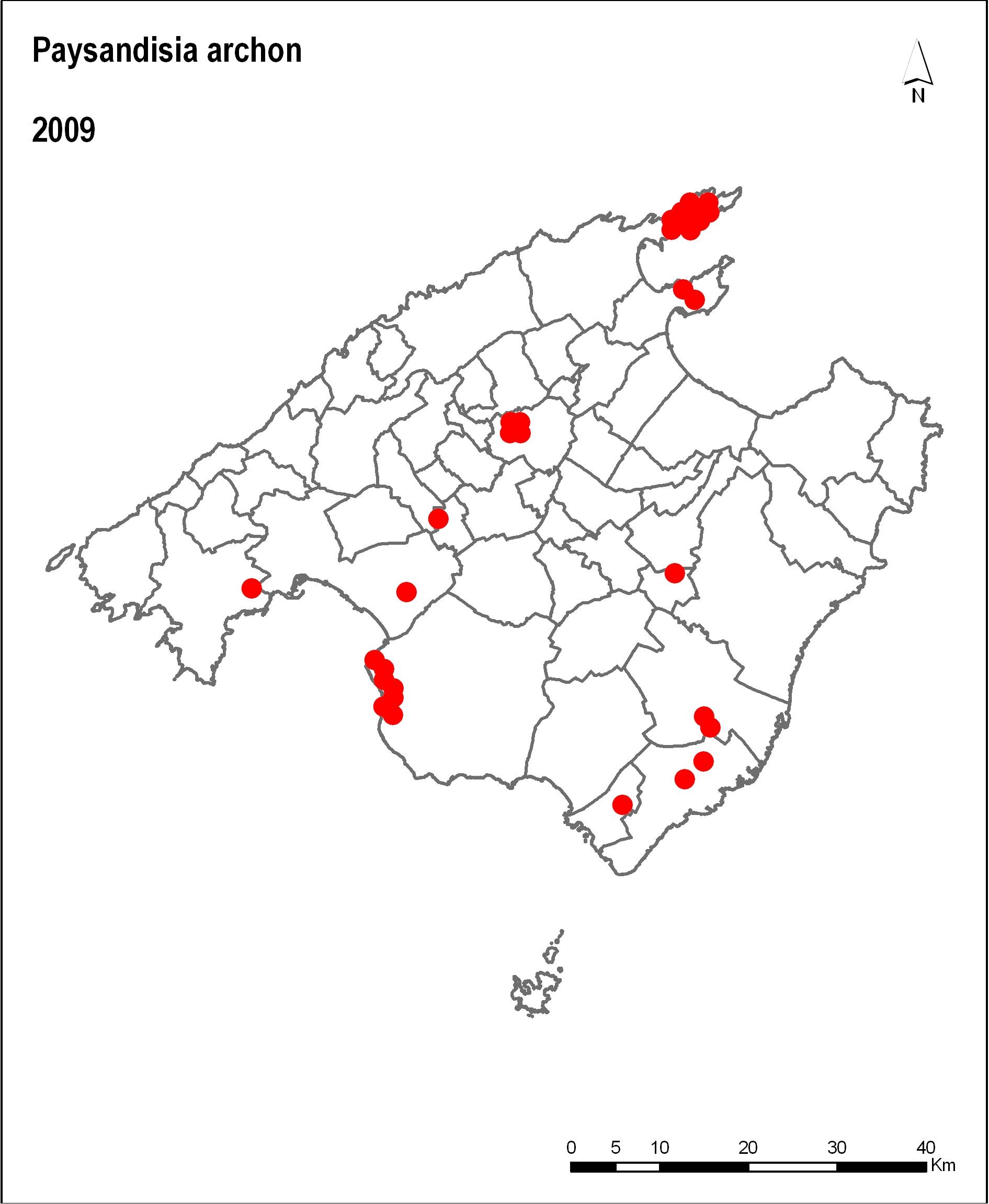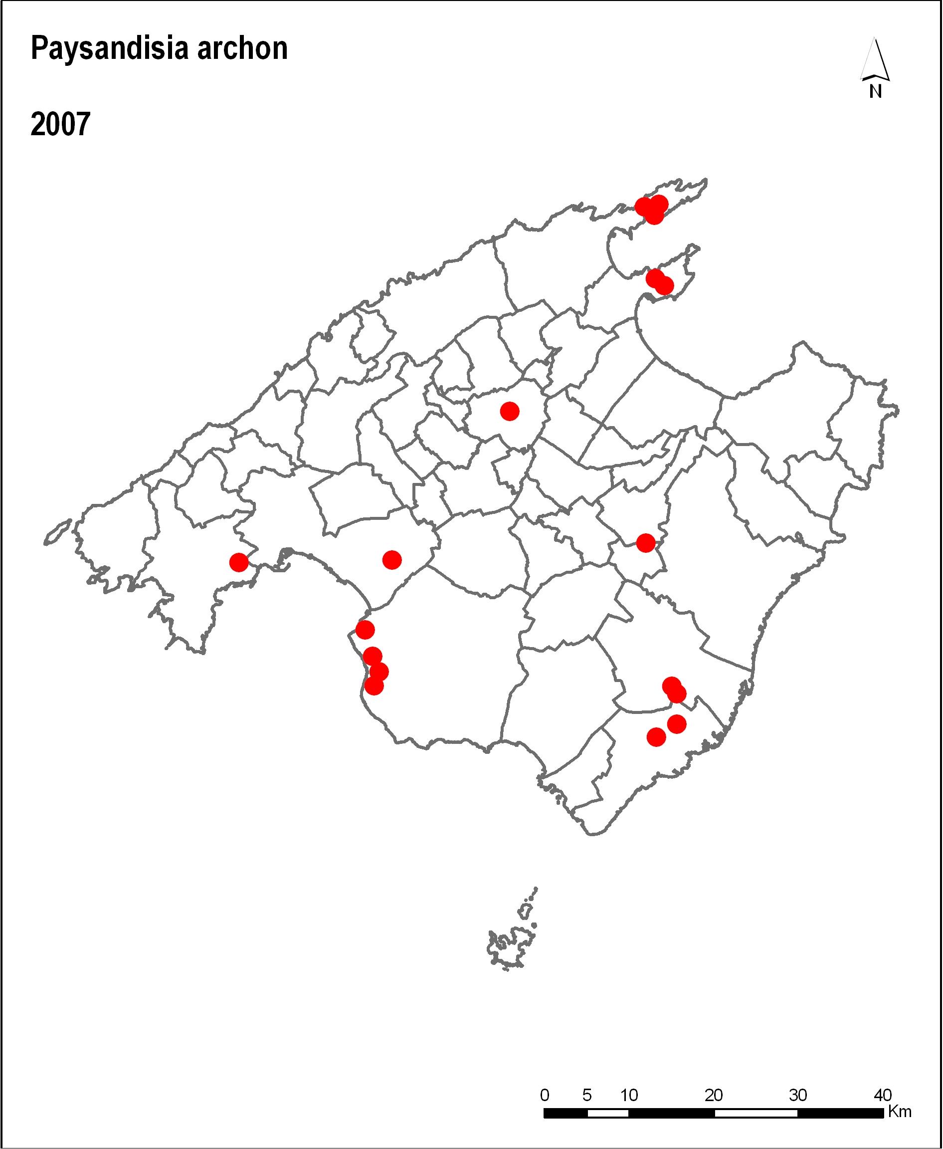 A finals de març de 2013, encara no hi ha cites de Paysandisia archon ni a Eivissa ni a Formentera.