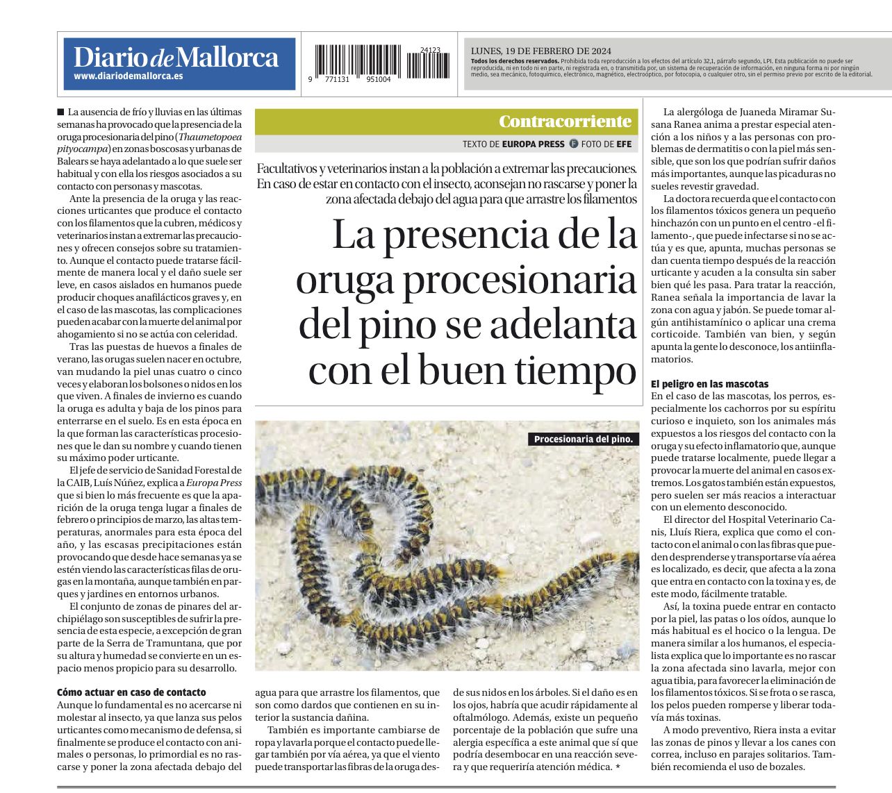 Mapes d'afectació de la processionària del pi a les Illes Balears