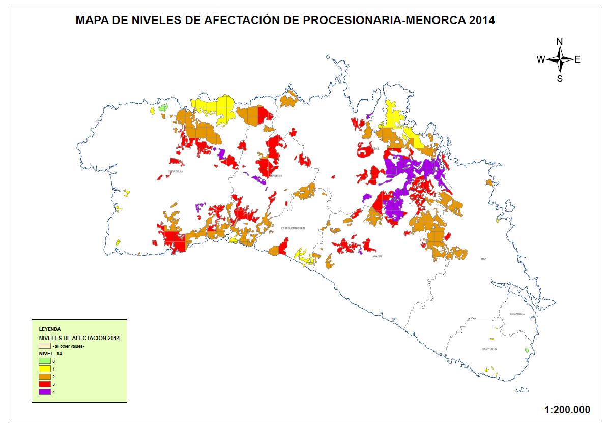 - Mapa d'afectació de la processionària del pi (Menorca) - 2014.