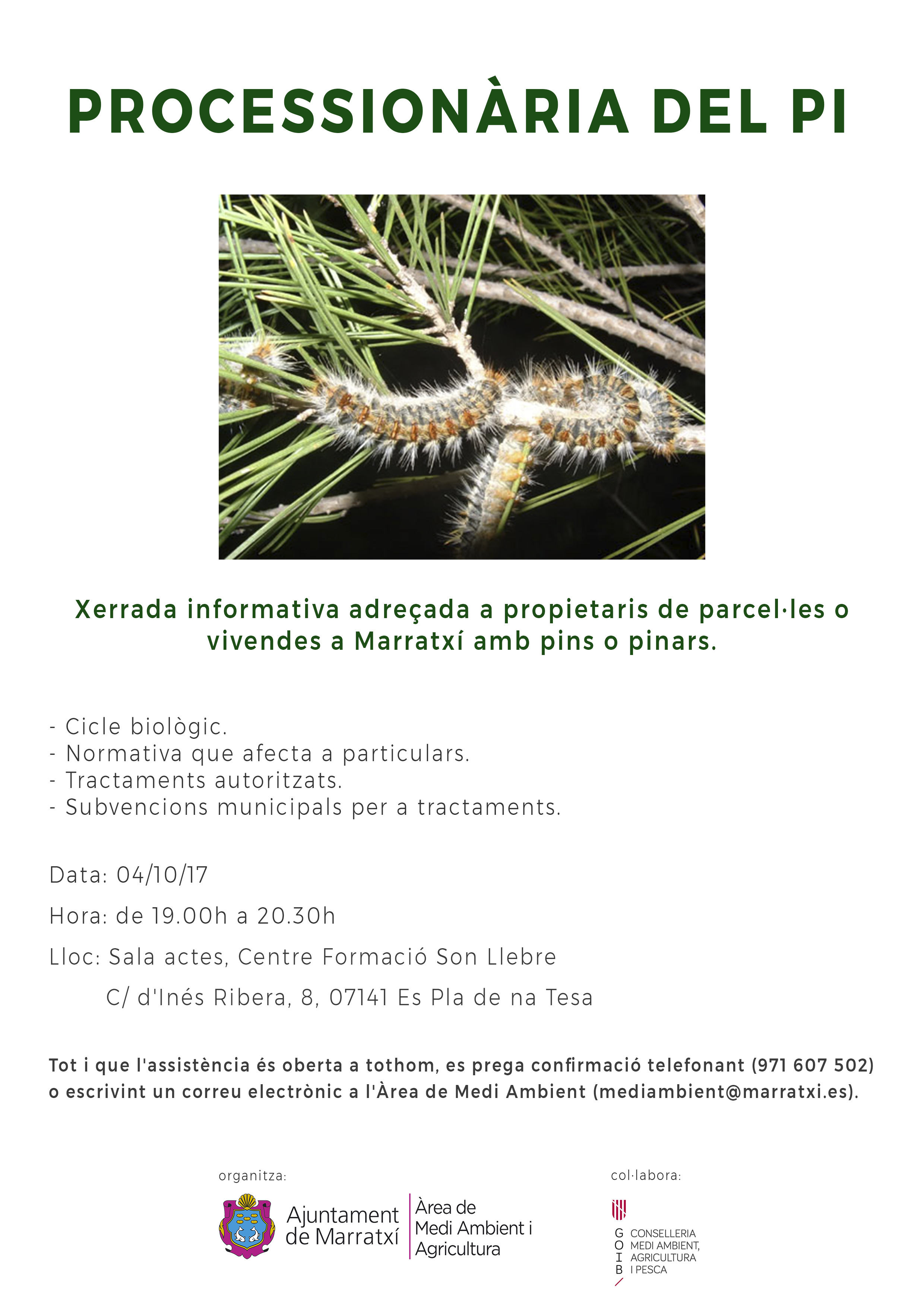 - Cartell de la "Xerrada informativa sobre la processionària del pi a l'Ajuntament de Marratxi"