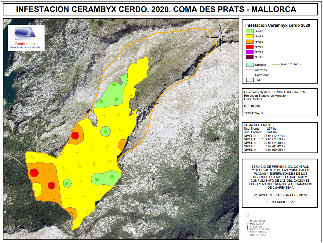 Mapas de afectación de la procesionaria del pino en las Islas Baleares