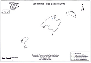 Mapas de afectación de la procesionaria del pino en las Islas Baleares