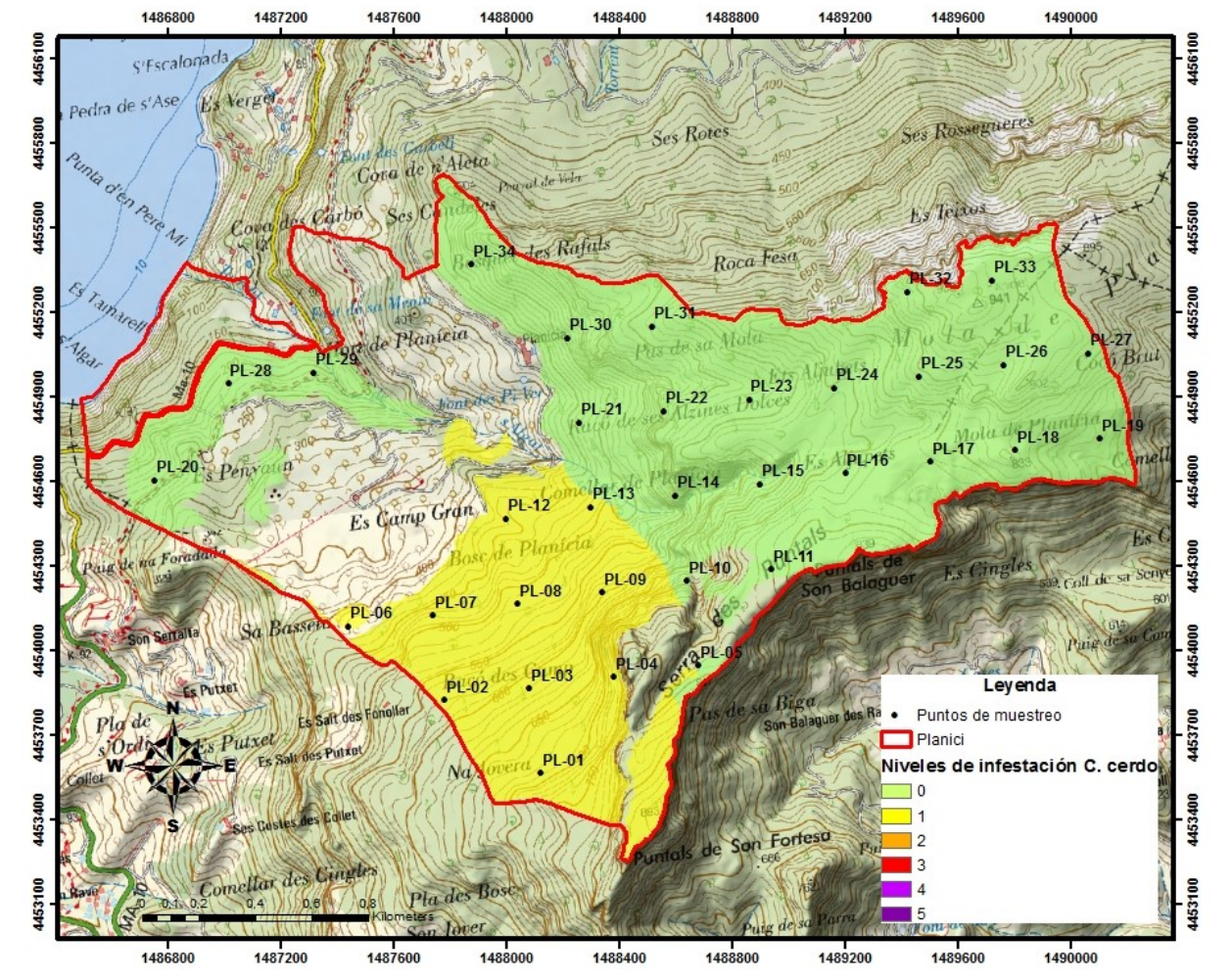 Mapas de afectación de la procesionaria del pino en las Islas Baleares