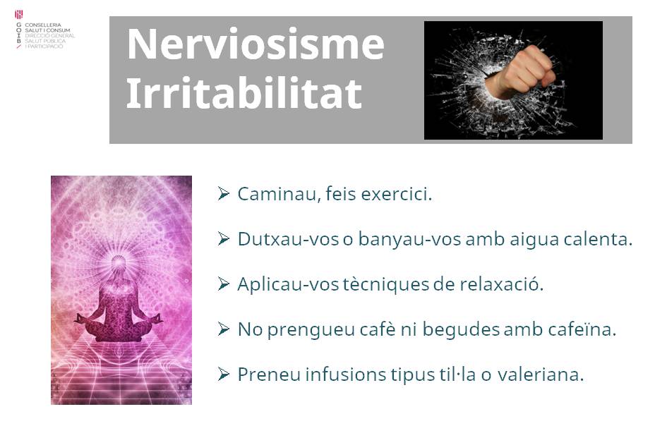 Aquí trobaràs una col·lecció de cartells amb les recomanacions per pal·liar la síndrome d’abstinència de la nicotina. Segons el fumador, de vegades se’n presenten uns o uns altres. Estar-ne previngut t’ajudarà.