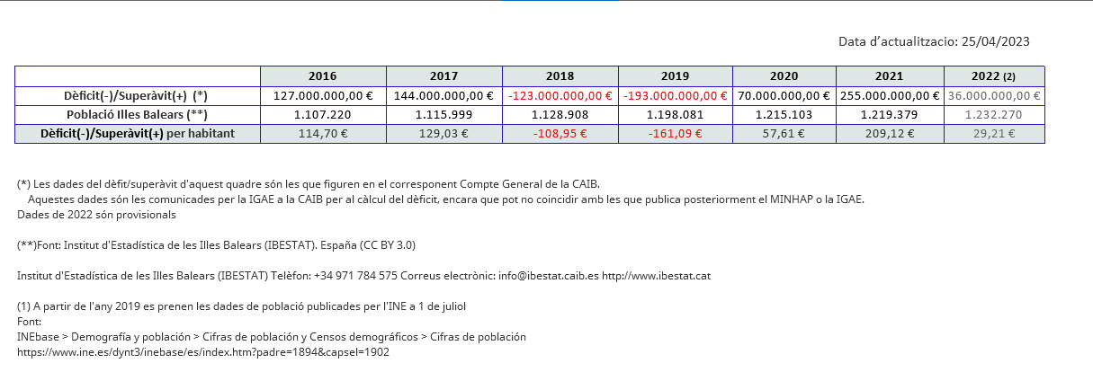 Podeu accedir a la informació a través del següent full de càlcul  Fulla de Càlcul ods