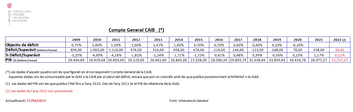 Economia i Finances > Altres indicadors econòmics > Dèficit/Superàvit sobre el PIB