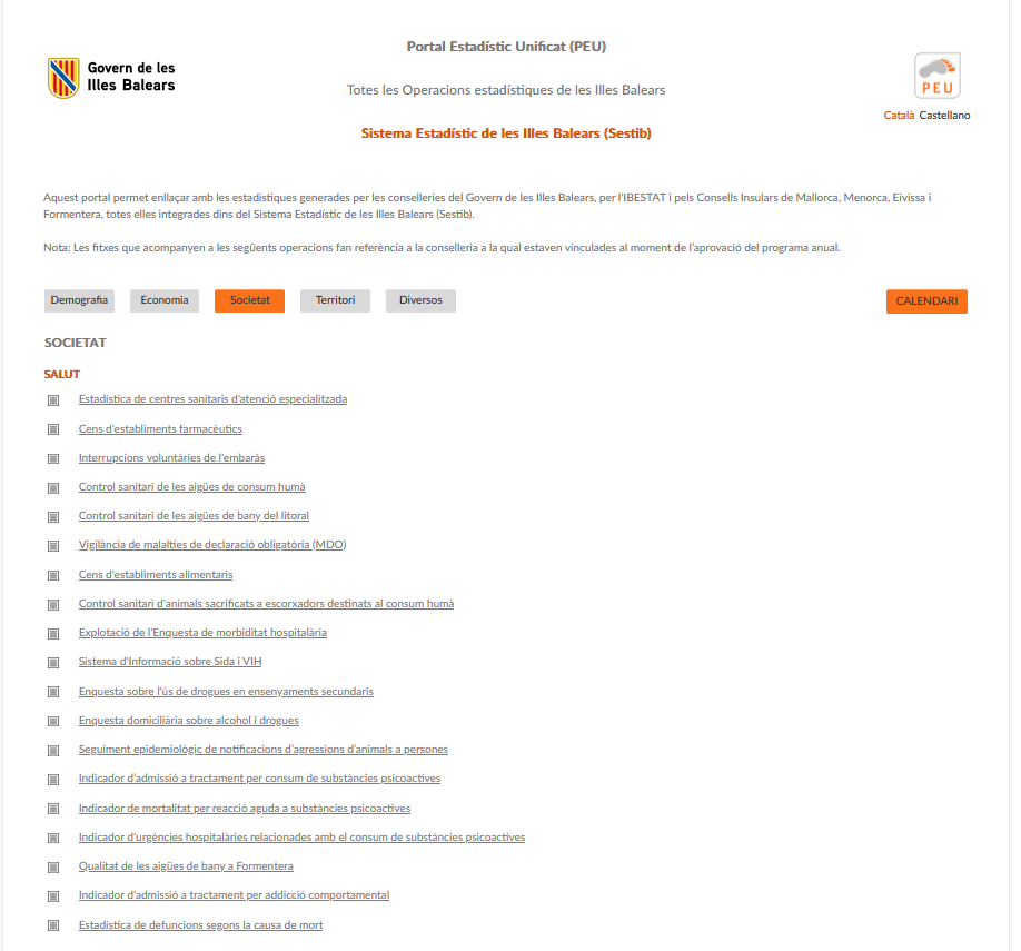 En l’apartat «SOCIETAT», trobareu, entre d’altres temes, les estadístiques sobre salut.