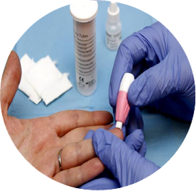 • Realización de la prueba: se recoge sangre capilar mediante una punción en un dedo.
