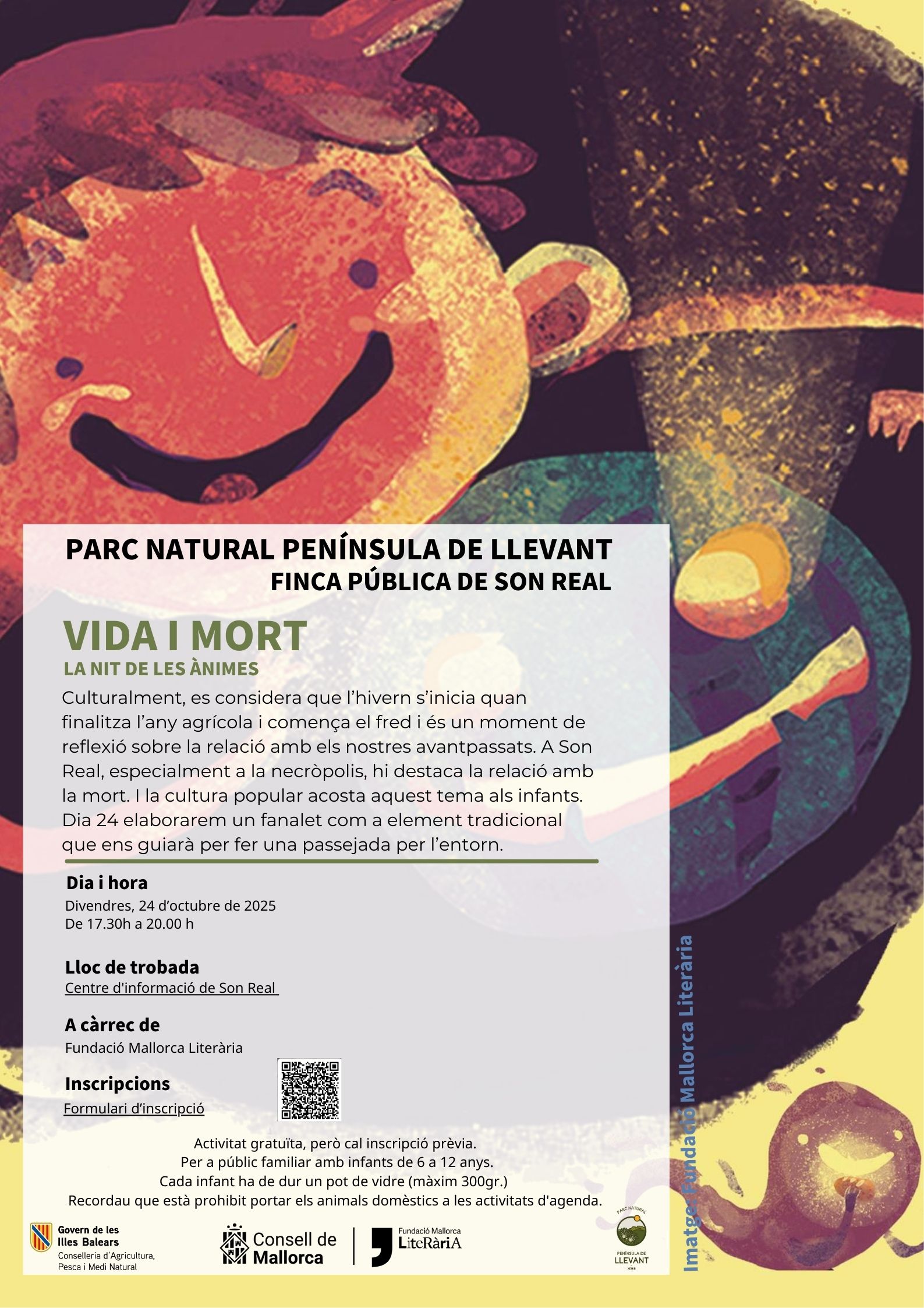 DESCRIPCIÓN: Culturalmente, se considera que el invierno se inicia cuando finaliza el año agrícola y empieza el frío y es un momento de reflexión sobre la relación con nuestros antepasados. En Son Real, máxime a la necrópolis, destaca la relación con la muerte. Y la cultura popular acerca este tema a los niños.Día 24 elaboraremos un farolillo como elemento tradicional que nos guiará para dar un paseo por el entorno.