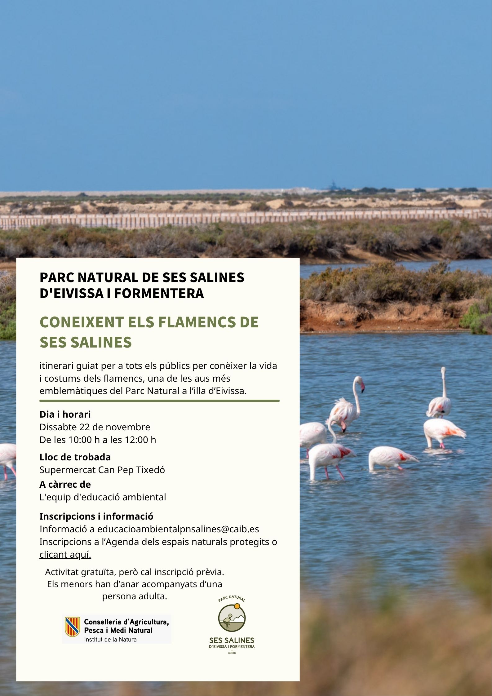 AVISO IMPORTANTE: Para realizar la inscripción es necesario rellenar el formulario. Par cualquier duda contactar por correo electrónico a: educacioambientalpnsalines@caib.es