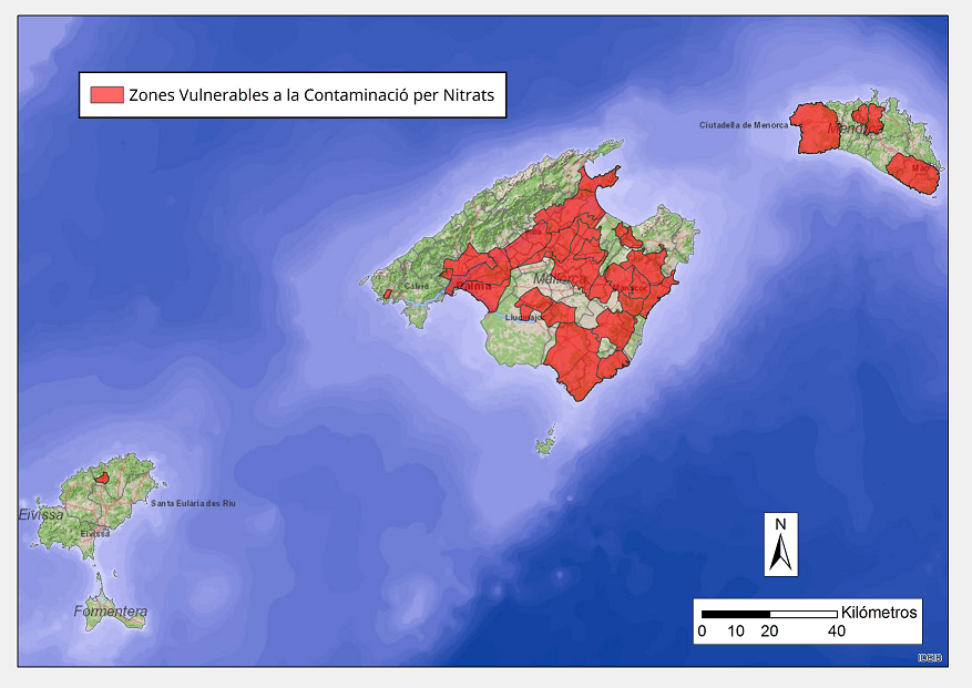 La primera designación de zonas vulnerables en las Islas Baleares se hizo mediante el Decreto 116/2010, de 19 de noviembre, el cual ha sido derogado por el Decreto 18/2023, de 27 de marzo, por el cual se designan las zonas vulnerables por la contaminación de nitratos procedentes de fuentes agrarias de las Islas Baleares y se aprueba el Programa de seguimiento y control del dominio público hidráulico.