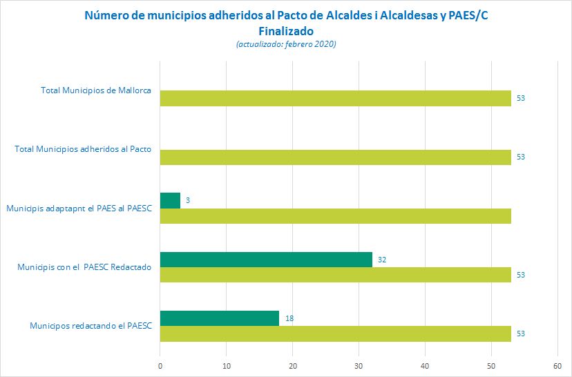 - Número de municipios adheridos al Pacto de Alcaldes i Alcaldesas de Mallorca (Para más información sobre el estado del pacto en las Islas Baleares ver el apartado de "vuestro municipio")
