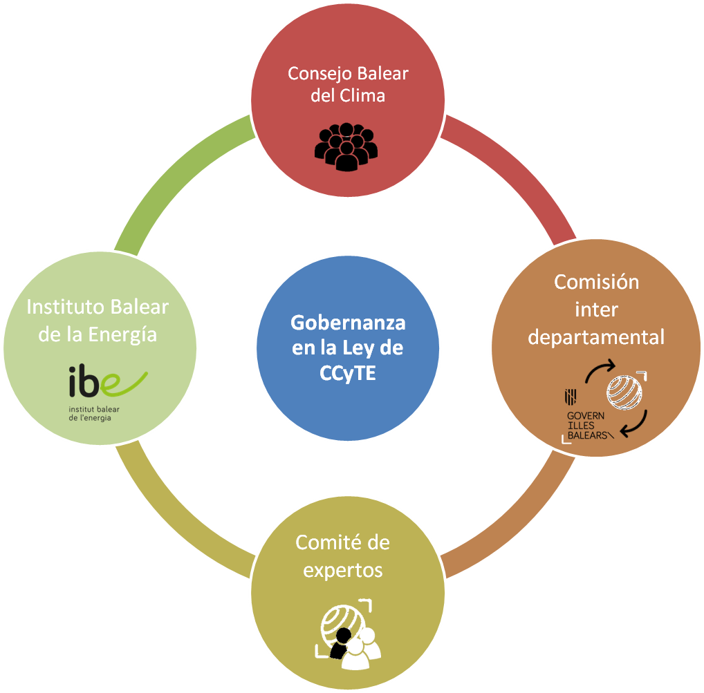 El artículo 6 de la Ley 10/2019, de 22 de febrero, de cambio climático y transición energética, crea el Consejo Balear del Clima como órgano colegiado de carácter consultivo, adscrito a la consejería competente en materia de cambio climático, que tiene como finalidades primordiales asesorar a las administraciones públicas sobre las políticas climáticas y de transición energética, proponer medidas de mitigación y adaptación al cambio climático, así como favorecer la participación de los sectores sociales y económicos de las Illes Balears en estos ámbitos.