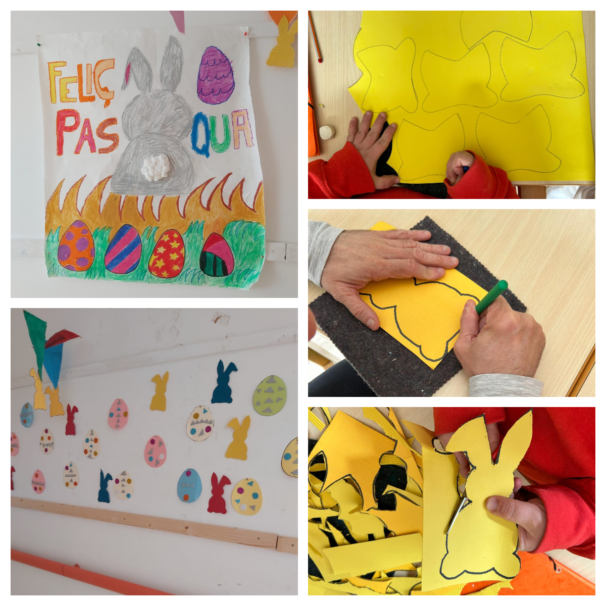 Per finalitzar vàrem repartir els conills que havíem fet els dies d’abans i varem ficar-hi ous de xocolata; a les persones que no podien menjar ous de xocolata els hi donàrem ous pintats.
