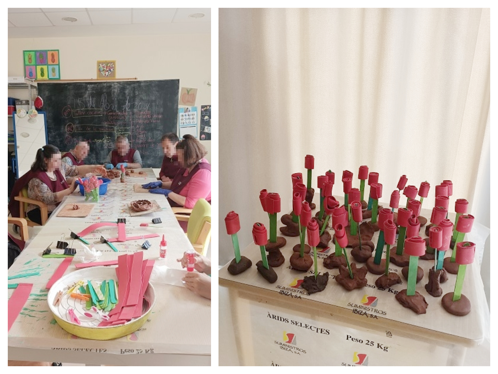 per aquest motiu, hem fet unes roses amb material reciclat amb una base de fang;