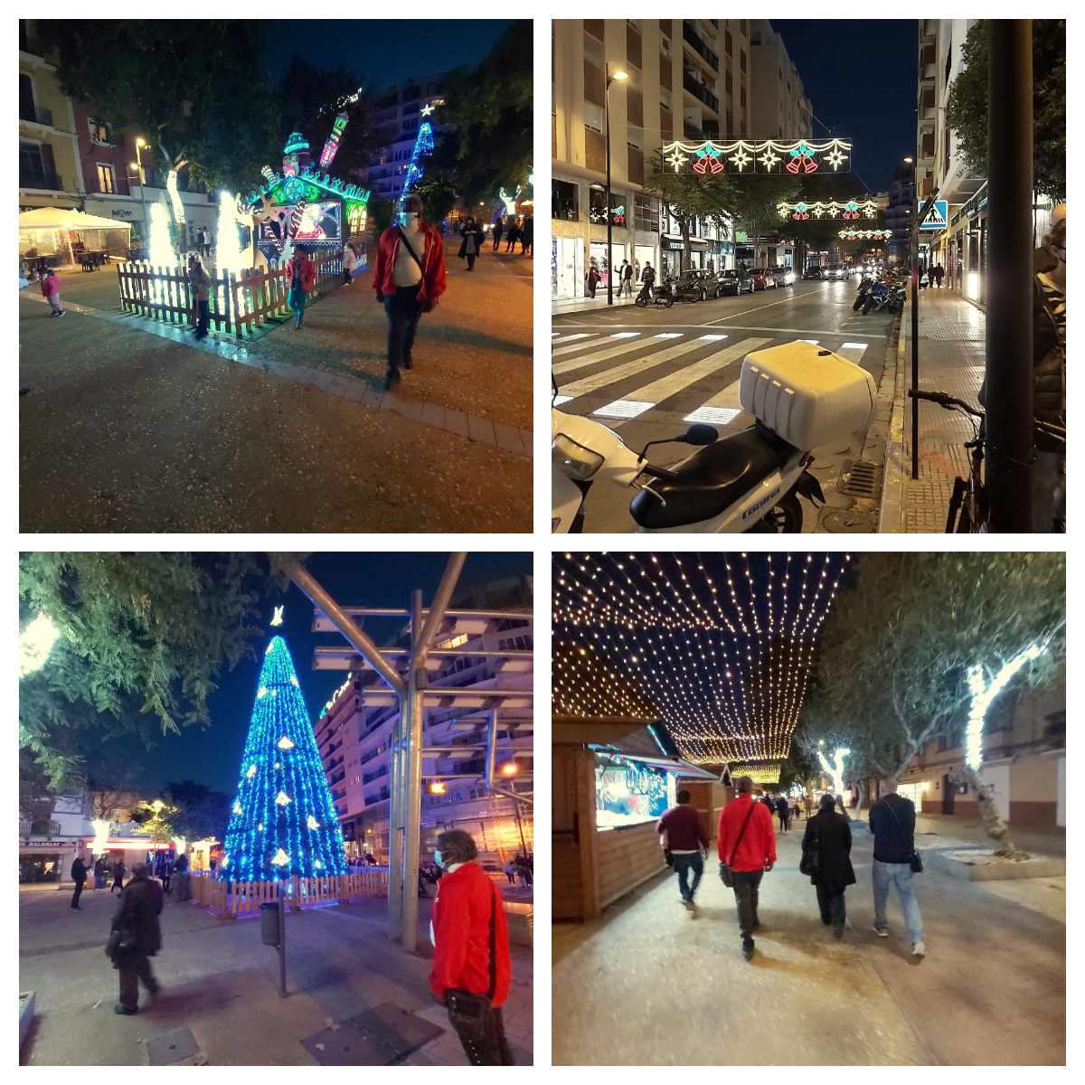 Sortim tots junts cap a Eivissa, el nostre punt de trobada és el parc de la Pau i des d'allà ens anem cap a Vara de Rei que és on hi ha els llums que més ens agraden. Amb els carrers il·luminats, ens fixam que enguany l'Arbre de Nadal s’ha il·luminat en blau, i també la caseta de Pare Noel, on hi ha molts de nens i nenes.