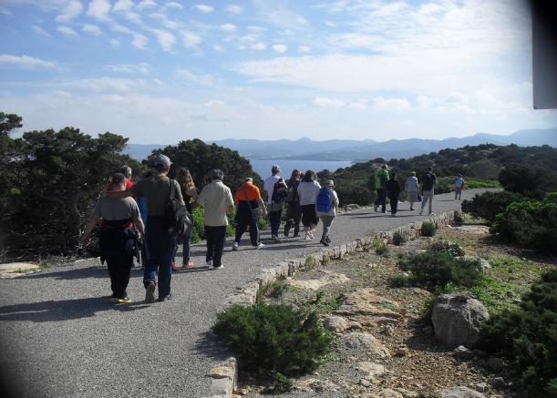 Després de la travessia amb vaixell i d’una breu parada per dinar, els participants van començar el recorregut a peu fins a arribar al polit far que corona el cim de l’illa.