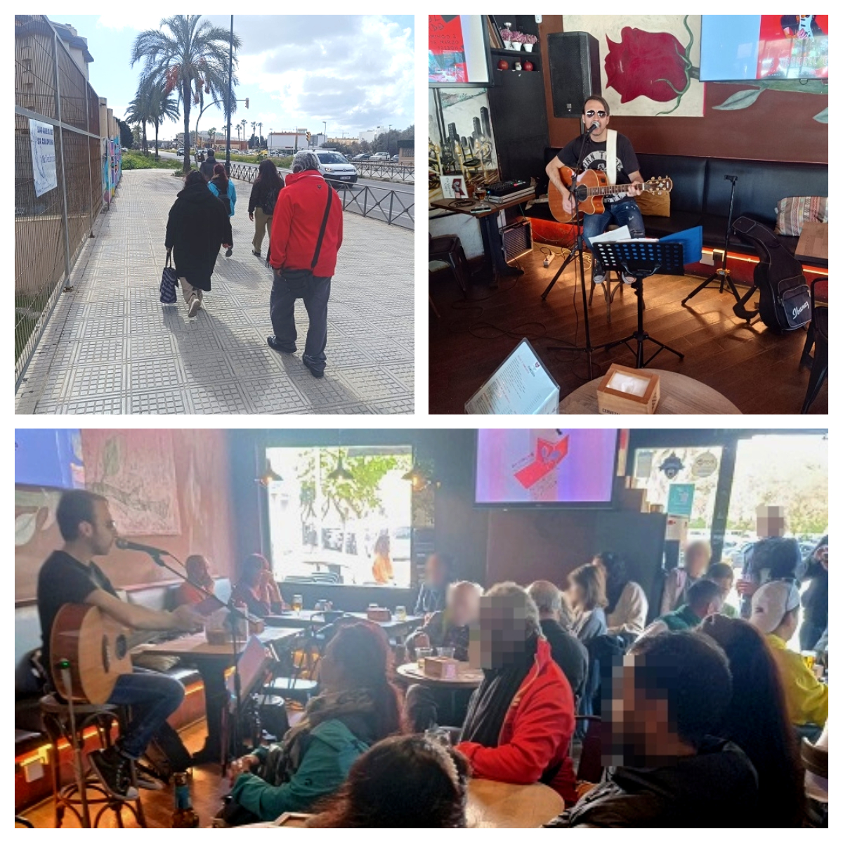 Quan deixa de ploure, sortim a fer una passejada aprofitant que sortirà el sol; ens fiquem a una cafeteria on els diumenges hi ha activitats culturals i hi havia un concert de música en viu rememorant que ahir va ser el Dia de les Illes Balears.