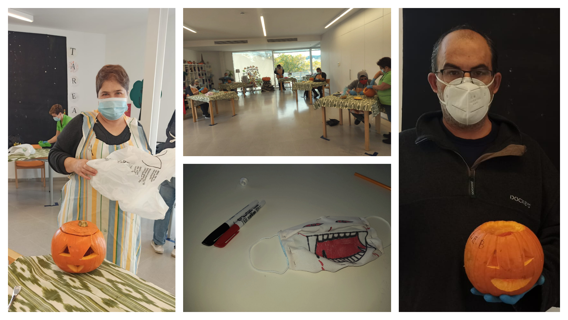 Durant la setmana vàrem dur a terme diferents activitats com l’elaboració de carabasses al taller ocupacional, mascaretes de Halloween personalitzades i customitzades al taller de costura, cinema fòrum i treballs manuals per decorar el centre, entre d’altres.
