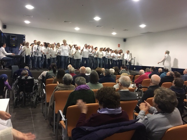 Junto a las directoras del coro, les acompañó su pianista y el resto de componentes del coro de gospel que tanto anima a nuestros mayores. Su amplio repertorio pasa por varios estilos musicales y clasicos de la música con los que animan a cantar a los mayores. Este concierto se organizó en el salón de actos de la Residencia Sa Serra, y disfrutamos de un gran público, entre residentes y familiares que se acercaron a pasar la tarde con nosotros.