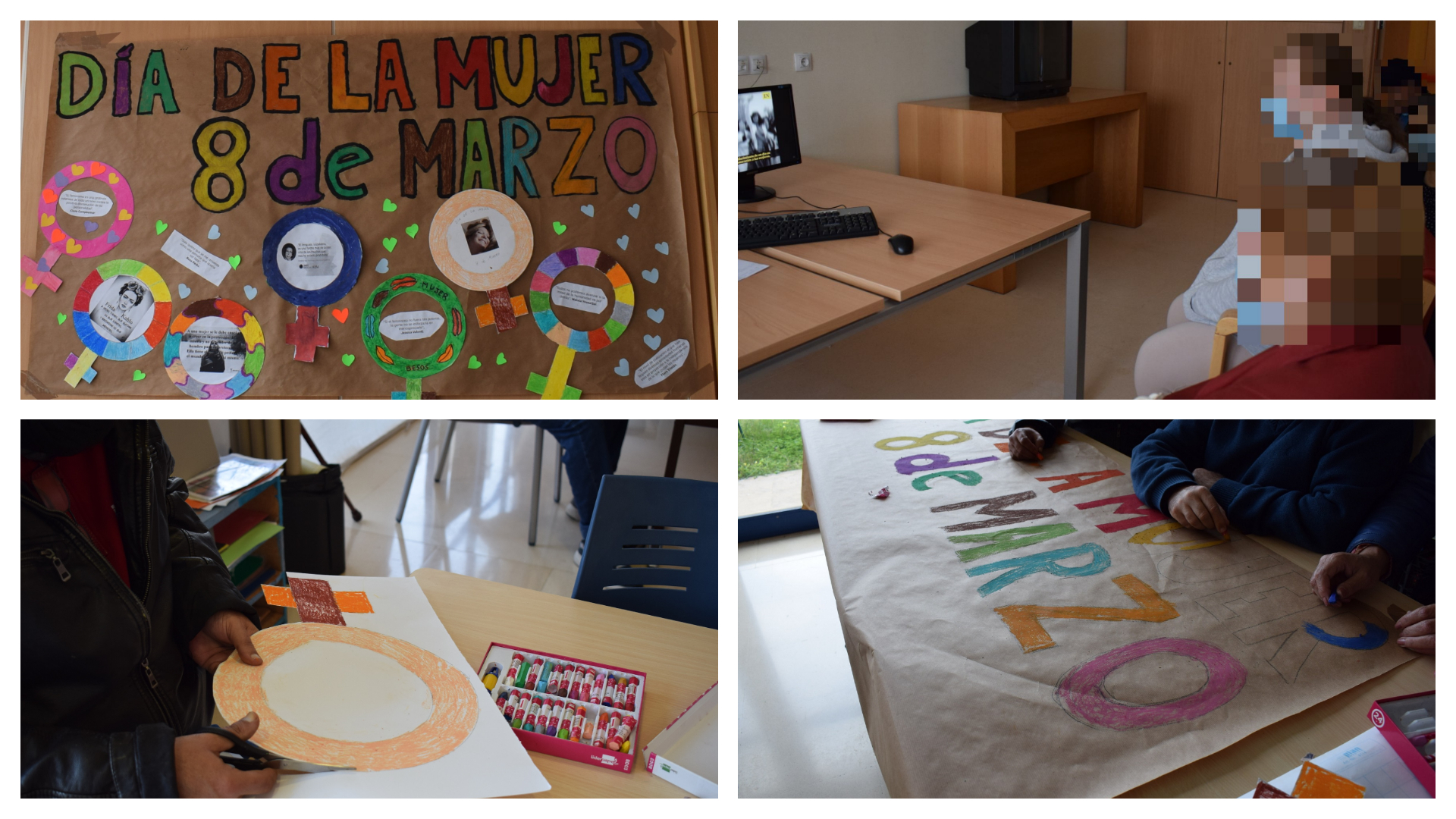 Para homenajear el Día de la Mujer, se ha realizado un mural donde han participado tanto las personas usuarias del centro de día como de la residencia.